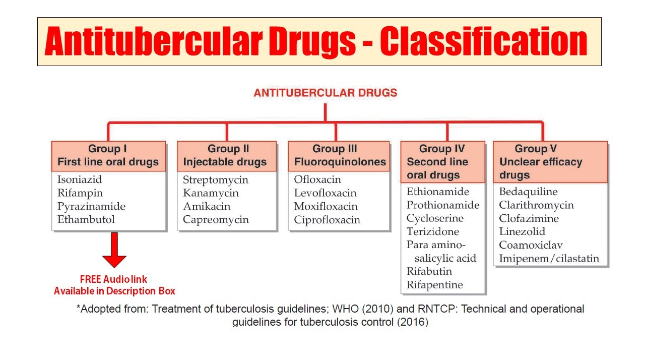 Antitubercular medications: rifampin, isoniazid, pyrazinamide, and ethambutol are FDA approved to treat Mycobacterium tuberculosis infections. Antitubercular medications are a group of drugs used to treat tuberculosis.